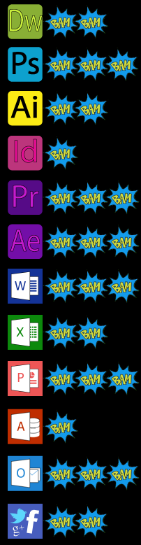 I'm also comfortable using Sony Vegas (Video Editing), Quark (Graphic Design), SPSS (Predictive Analytics) and Microsoft Publisher (Desktop Publishing)
